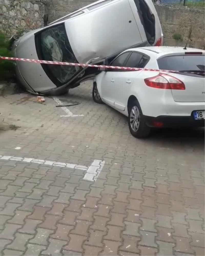 İçerisinde sürücü bulunmayan otomobil, park halindeyken, 5 metre yüksekliğindeki istinat duvarından site bahçesine uçtu. Otomobil, başka bir aracın üzerine düştü. Sabah gürültü üzerine uyanan site sakinleri, apartmanlarının bahçesinde otomobil görünce şaşkına döndü. Site sakinleri durumu polise bildirdi. Olay yerine polis ve sağlık ekibi geldi. Otomobil, kepçe yardımıyla istinat duvardan kurtarıldı. Olayla ilgili tahkikat sürüyor.
