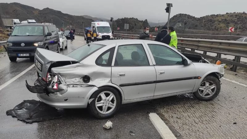 Otomobil kayganlaşan yolda bariyere çarptı: 1 yaralı