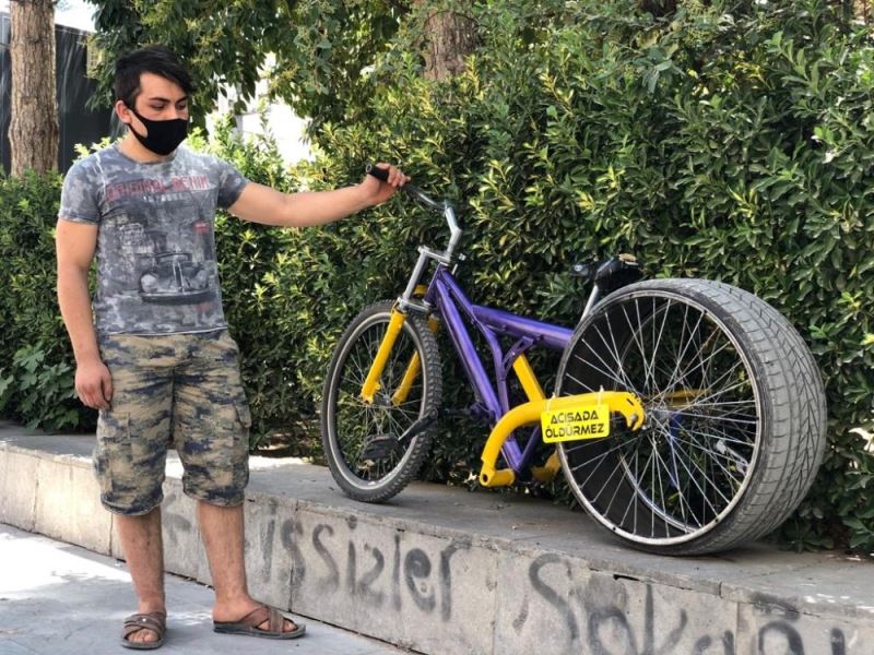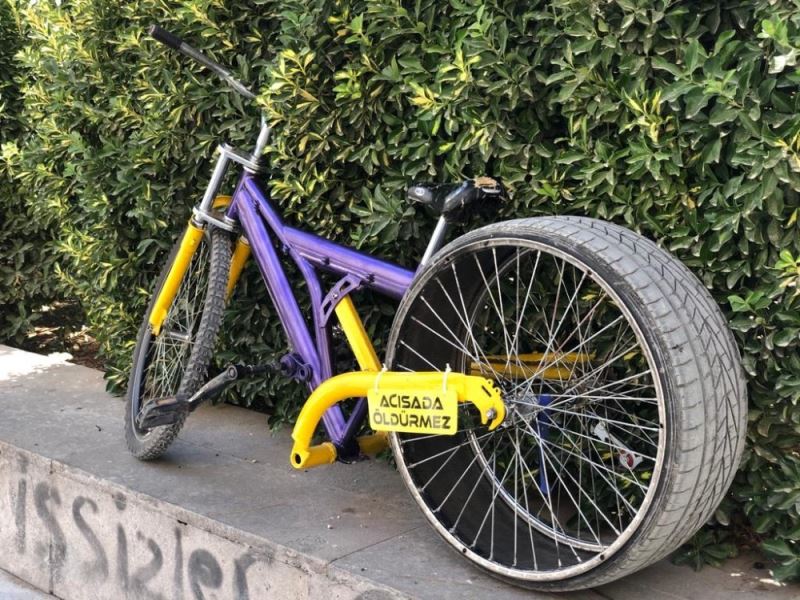 Mardin’in Kızıltepe ilçesinde yaşayan Nurullah Uğur, bisikletine otomobil lastiği taktı. Uğur’un bisikletini gören çevredeki vatandaşlar, şaşkınlıklarını gizleyemedi.