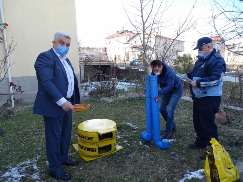 Belediye işçileri tarafından kullanım süreleri dolan lastikler değerlendirilerek kedi evine dönüştürüldü. Ayrıca100’lük plastik borulardan yemlik ve suluklar yapıldı. Belediye Başkanı Fatih Çalışkan, kış şartlarında beslenmekte güçlük çeken sahipsiz hayvanların sokakta beslenebilmesi için “kedi evi” projesini hayata geçirdiklerini söyledi. Başkan Çalışkan,” Proje çerçevesinde Belediye Fen işlerinde çalışan işçilerimizin kullanım süreleri dolan eski oto lastiklerinden yaptığı 10 kedi evi ile 100’lük plastik borulardan yapılan 20 adet yemlik ve suluğu çeşitli renklere boyayıp ilçede daha önce belirlediğimiz alanlara bıraktık. İhtiyaca göre kedi evlerinin yapımına devam edeceğiz. Vatandaşlardan, sokak hayvanlarının yiyeceği atık gıdaları sokaklara yada çöplere değil de kedi evlerine veya yemliklere bırakmalarını rica ediyoruz. Kedi evi projesine emeği geçen zabıta ekiplerimize, kedi evi ile yemlik ve suluk yapımına katkıda bulunan işçilerimize çok teşekkür ediyorum” dedi.