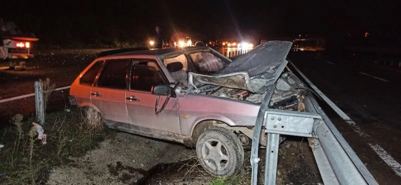 Otomobil önce hayvana çarptı ardından bariyere saplandı