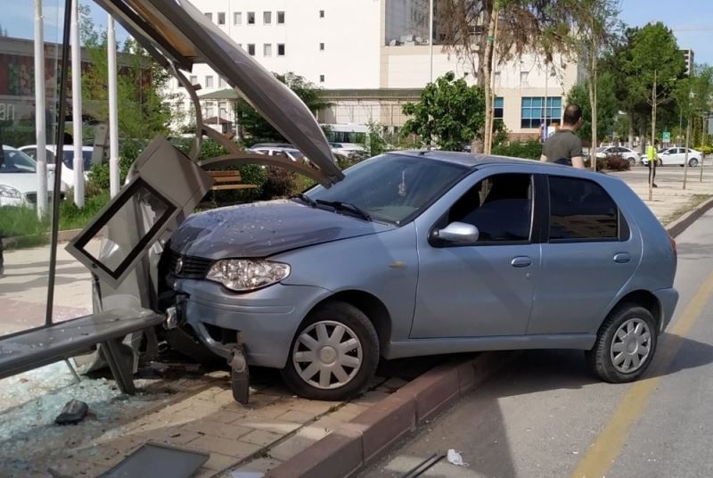 Elazığ’da sürücüsünün direksiyon hakimiyetini kaybettiği otomobil, otobüs durağına çarparak durabildi, kaza ucuz atlatıldı.
