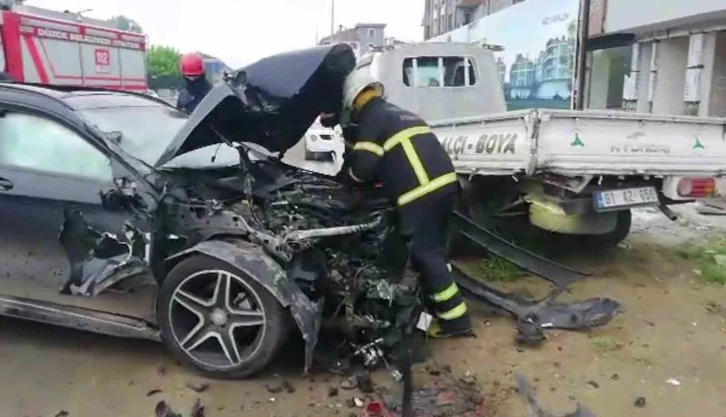 Olay, Ruhi Kurnaz Caddesi’nde meydana geldi. Edinilen bilgiye göre, Nezih Tütüncüoğlu Bulvarı istikametinden Ruhi Kurnaz Caddesine seyir halinde olan Selma A. idaresindeki 06 BTM 786 plakalı Mercedes marka otomobil, sürücüsünün direksiyon hakimiyetini kaybetmesi neticesinde yol kenarında park halinde bulunan 81 AZ 656 Hyundai marka kamyonete çarptı. Hareket eden kamyonet, önünde bulunan aydınlatma direğine çarparak devirdi. İhbar üzerine olay yerine sağlık ve polis ekipleri sevk edildi. Kazada Selma A. hafif şekilde yaralandı. Elektrik kaçağı şüphesi üzerine şerit trafiğe kapatıldı. Direk, Düzce Belediyesi İtfaiye Müdürlüğü ekiplerinin kontrolünün ardından yol kenarına alındı.
