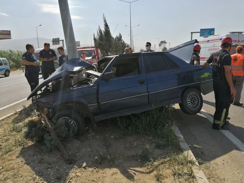 Manisa’nın Salihli ilçesinde kontrolden çıkan otomobilin refüjdeki aydınlatma direğine çarpması sonucu meydana gelen kazada sürücü ölümden döndü.