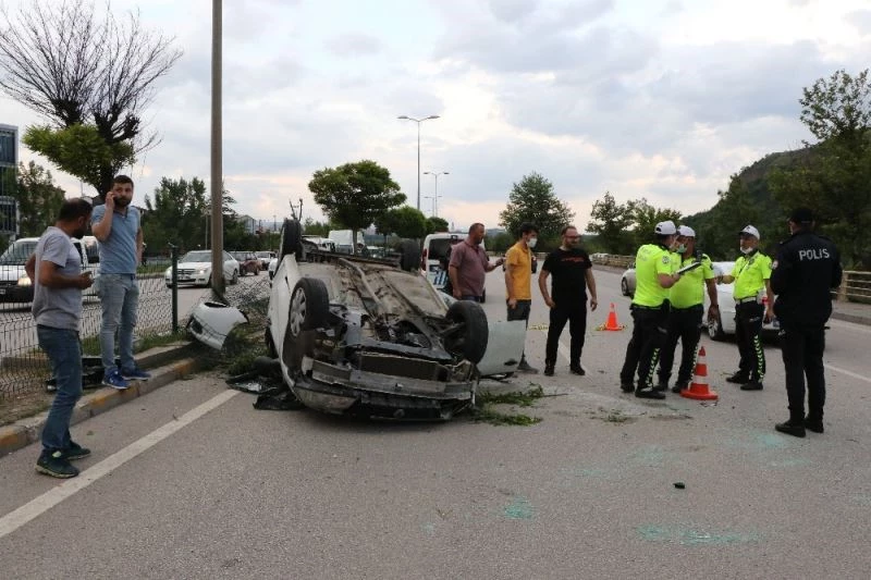 Edinilen bilgiye göre, Safranbolu’dan Karabük istikametine giden Yasin Çelik (28) yönetimindeki 78 AH 643 plakalı otomobil, Şehit Ateşe Reşat Bulvarı’nda sürücüsünün direksiyon hakimiyetini kaybetmesiyle refüje çarptı. Çarpmanın etkisiyle takla atan otomobil karşı şeride geçti. Kazayı gören diğer sürücüler 112 Acil Servis ve polis ekiplerine haber verdi. Vatandaşlar otomobilde bulunanları çıkarırken, kazada sürücü ile birlikte Sezgin Karaman (38) ile Durmuş Yılmaz (39) yaralandı. Yaralılar ambulansla Karabük Eğitim ve Araştırma Hastanesine kaldırıldı. Kaza nedeniyle bir süre trafik tek şeritten sağlanırken, otomobil çekici yardımıyla kaldırıldı.