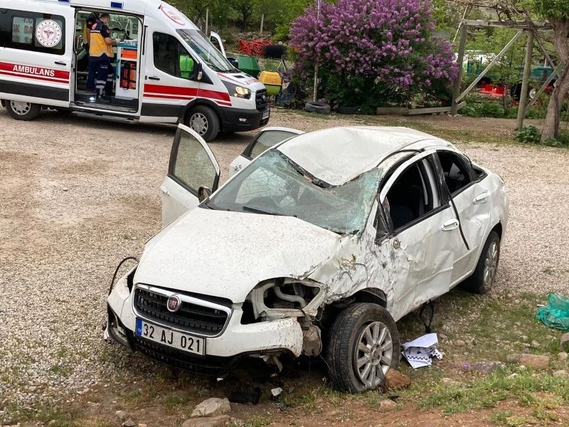 Konya’nın Beyşehir ilçesinde, takla atarak motoru yerinden fırlayan otomobilde bulunan 2 kişi yaralandı.