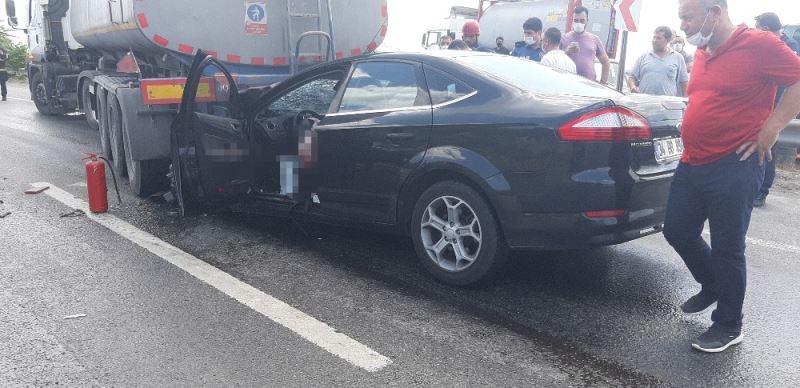 Otomobil tankere çarptı, sıkışan sürücüyü itfaiye kurtardı