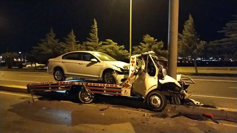 Otomobil taşıyan çekici direğe çarptı, sürücü hayatını kaybetti