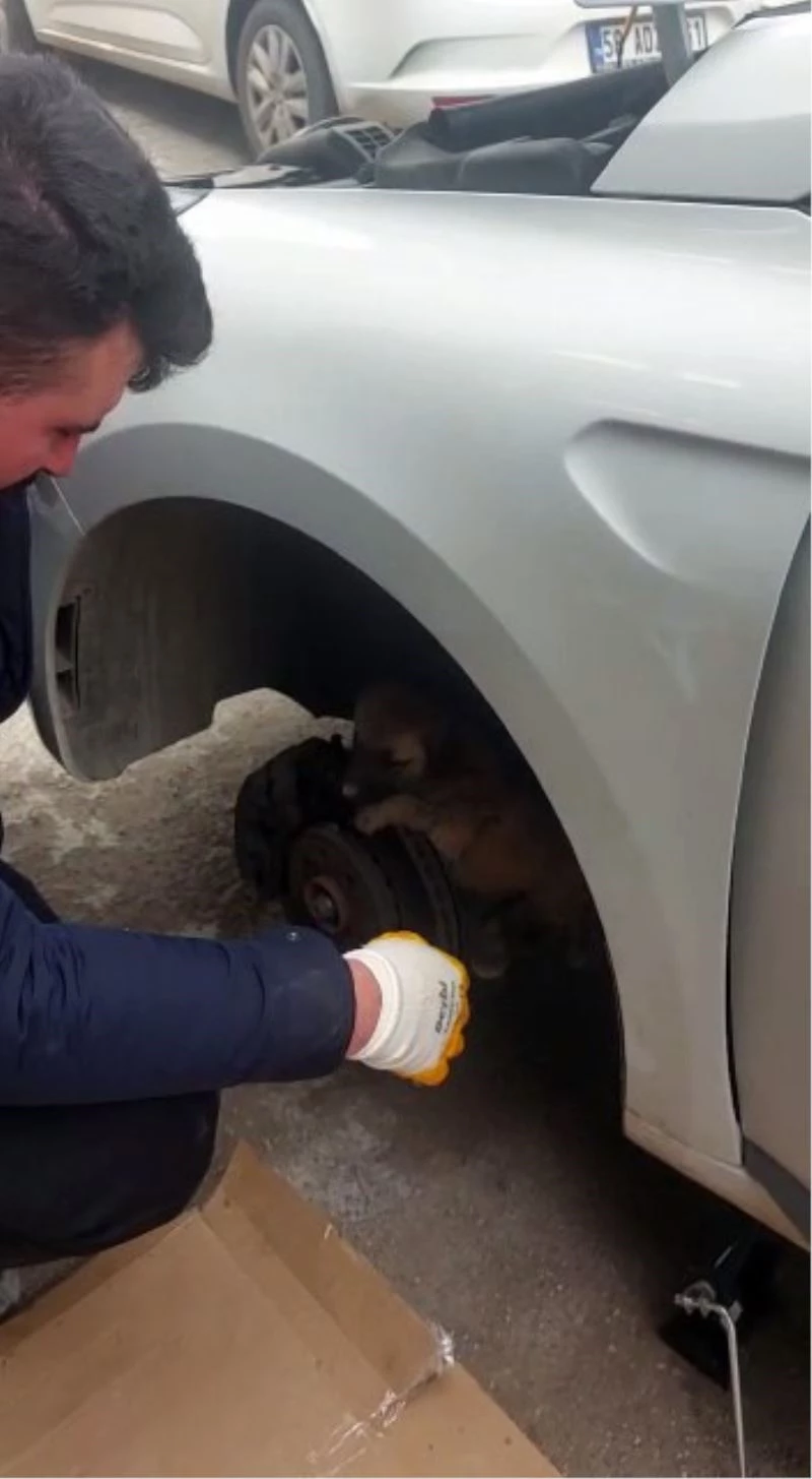 Otomobil tekerleğine sıkışan yavru kangal kurtarıldı
