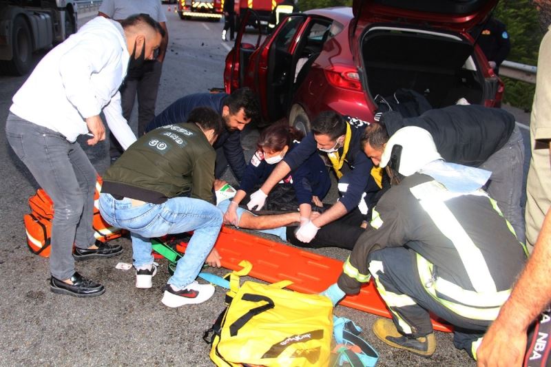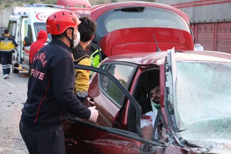 Kaza, saat 20.00 sıralarında İzmir-Ankara D300 karayolu Kovukdere mevkiinde meydana geldi. Edinilen bilgiye göre, İzmir istikametinden Uşak istikametine seyir halinde olan Sadık S. idaresindeki 06 BFG 601 plakalı otomobil, Kovukdere mevkiinde rampalardan çıkarken, aynı yönde seyir halinde olan Nuh Ç. idaresindeki 38 KB 291 plakalı tıra arkadan çarptı. Çarpmanın etkisiyle otomobilin ön tamponu tırın kasasına saplandı. Otomobil sürücüsü Sadık S. ve otomobilde yolcu olarak bulunan Osman Arslan ağır yaralandı. Kazayı görenlerin haber vermesi ile olay yerine 112 acil sağlık, itfaiye, polis, jandarma ve karayolları ekibi sevk edildi. Kısa sürede olay yerine gelen 112 acil sağlık ekipleri, ağır yaralı otomobil sürücüsü Sadık S.’ye ilk müdahale yaparken, Manisa Büyükşehir Belediyesi’ne bağlı Kula İtfaiye Amirliği ekipleri de otomobilin yolcu koltuğundan sıkışan Osman Arslan’ı sıkıştığı yerden çıkarmak için çalışma yaptı. İtfaiye ekibinin çalışmaları sonucunda sıkıştığı yerden ağır yaralı olarak çıkarılan Osman Arslan ve otomobil sürücüsü Sadık S., olay yerinde yapılan ilk müdahalelerinin ardından Kula Devlet Hastanesi’ne getirilmeden Salihli Devlet Hastanesine sevk edildi. Yaralıların hayati tehlikelerinin bulunduğu öğrenildi.