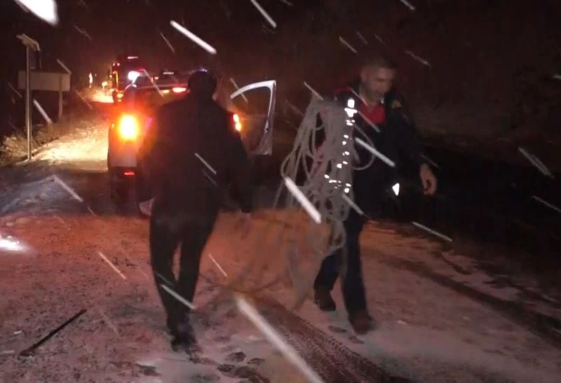 Ağrı’da etkisini arttıran kar yağışı nedeniyle Hamur ilçesi Burgulutaş mevkiinde yolun kaygan olmasından dolayı Suat Efe (32) idaresindeki 77 ES 250 plakalı araç uçurumdan yuvarlandı. Aracın uçurumdan yuvarlanması sonucu araç sürücüsü Suat Efe araçta sıkıştı. Kazayı gören vatandaşların haber vermesi üzerine bölgeye çok sayıda polis ekibi, 112 Acil Sağlık ekibi ile Ağrı Belediyesi itfaiye ekipleri sevk edildi. Araçta sıkışan yaralı sürücüyü kurtarmak için itfaiye ekipleri ve sağlık çalışanları aracın düştüğü bölgeye halat yardımıyla inerek sürücüyü sıkıştığı yerden kurtardı. Sağlık ekiplerinin olay yerinde ilk müdahaleyi yapmasının ardından yaralı sürücü Suat Efe ambulansla Ağrı Eğitim ve Araştırma Hastanesi’ne kaldırıldı. Hastaneye sevk edilen yaralı sürücünün sağlık durumunun ise iyi olduğu öğrenildi.