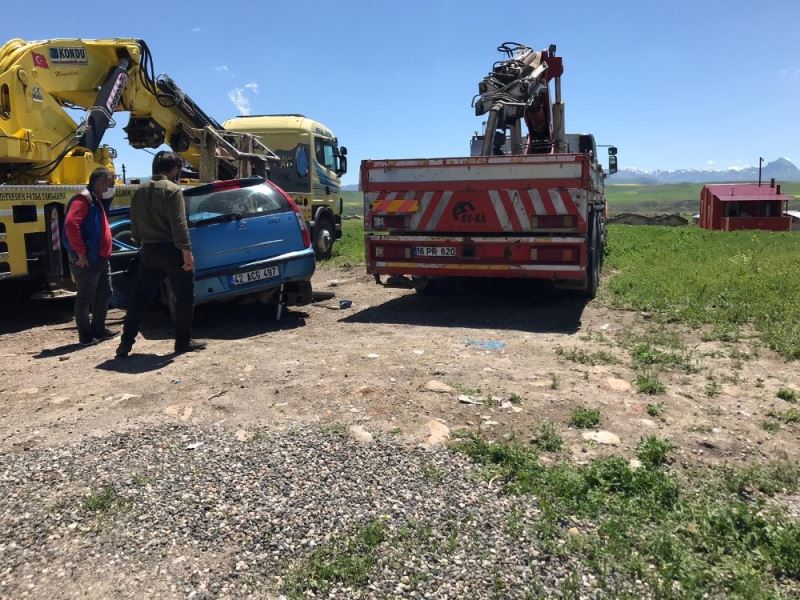Erzurum’un Horasan ilçesinde kontrolden çıkarak park halindeki vince çarpan otomobilin sürücüsü hayatını kaybetti.