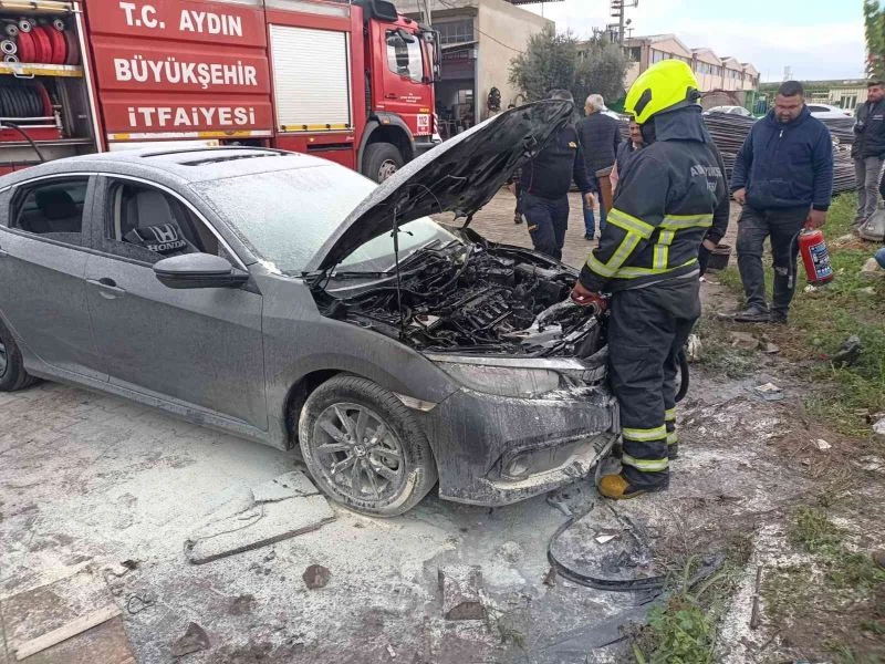 Olay, Çarşı Mahallesi sanayi girişinde öğle saatlerinde meydana geldi. Edinilen bilgiye göre, ait park halindeki İ.Ç.’ye otomobilin motor kısmından henüz bilinmeyen bir nedenle yangın çıktı. Otomobilden dumanların yükseldiğini gören vatandaşlar durumu 112 Acil Çağrı Merkezi’ne bildirdi. İhbar üzerine bölgeye polis ve itfaiye ekipleri sevk edildi. Kısa sürede olay yerine gelen Aydın Büyükşehir Belediyesi İtfaiye Daire Başkanlığı ekipleri yangına müdahale ederek söndürdü. Yangında otomobilde maddi hasar meydana gelirken, yangının çıkış nedeninin tespit edilebilmesi için çalışma başlatıldı.