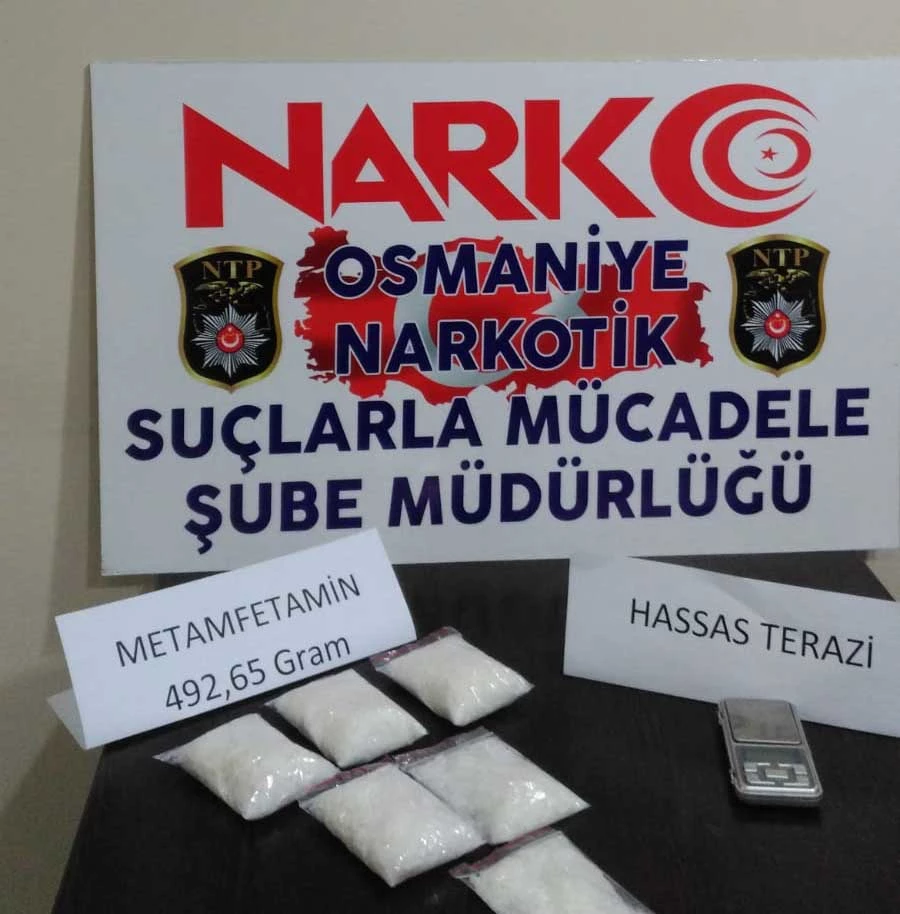 Osmaniye`de şüphe üzerine durdurulan otomobildeki bir pardösünün cebinden 493 gram uyuşturucu metamfetamin maddesi çıktı, 2 kişi gözaltına alındı. İl Emniyet Müdürlüğü Narkotik Suçlarla Mücadele Şube Müdürlüğü ekipleri, Tarsus Adana Gaziantep E 90 otoyolu Kadirli gişelerinde oluşturduğu uygulama noktasında uyuşturucu ticareti yapanlara yönelik çalışma başlattı. Bu sırada C.D. (31) idaresindeki 06 FC 8055 plakalı araçtan şüphelenen ekipler, otomobili durdurdu. Yapılan detaylı aramada, araç içerisindeki pardösünün cebinde paketler halinde 493 gram metamfetamin ile hassas terazi ele geçirildi. Uyuşturucu maddenin Bitlis`ten temin edilip, İzmir`e götürüldüğü, piyasa değerinin tahmini 180 bin lira olduğu kaydedildi. Uyuşturucu ticareti iddiasıyla gözaltına alınan C.D. ile otomobilde ki yolcu Ş.K. (40) sorgulanmak üzere emniyete götürüldü.