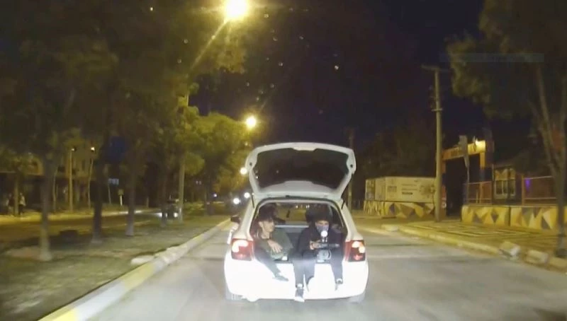 Aksaray’da seyir halindeki otomobilin bagajında giden düğün kameramanı 2 genç görenleri hayrete düşürdü. “Yok artık” dedirten olayda otomobilin sürücüsü arkadaki gençleri düşünmeden kilometrelerce yol katetti.