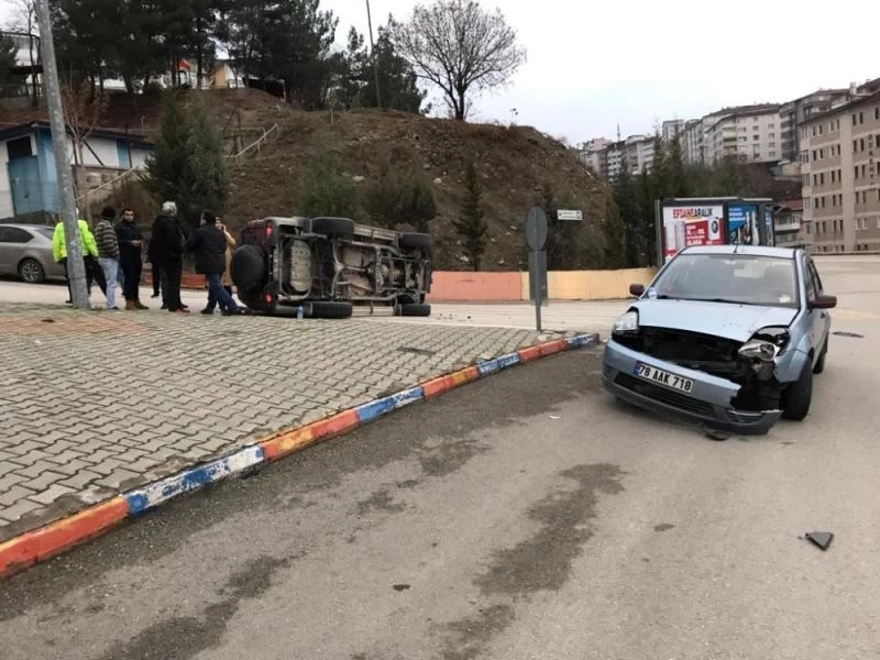 Kaza, Esentepe Mahallesi 75. Yıl kavşağında meydana geldi. İ.B. yönetimindeki 78 AAK 718 plakalı Ford marka otomobil Köprülü Sokak’tan gelip 75. Yıl kavşağını geçmekte olan R.Ö.E. idaresindeki 78 SM 263 plakalı Nissan marka cipe çarptı. Kazada cip devrilirken araçlarda maddi hasar oluştu. İhbar üzerine olay yerine polis ekipleri sevk edildi. Kaza ile ilgili inceleme başlatıldı.