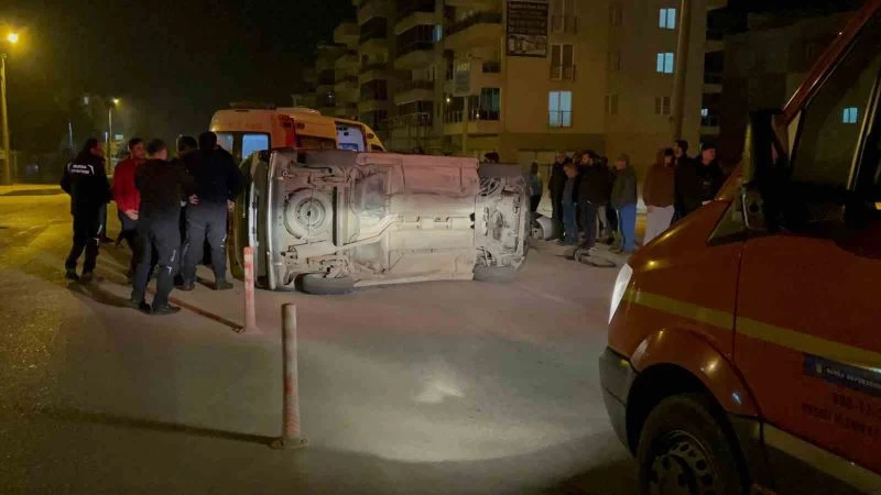 Otomobilin çarptığı hafif ticari araç devrildi: 1 yaralı