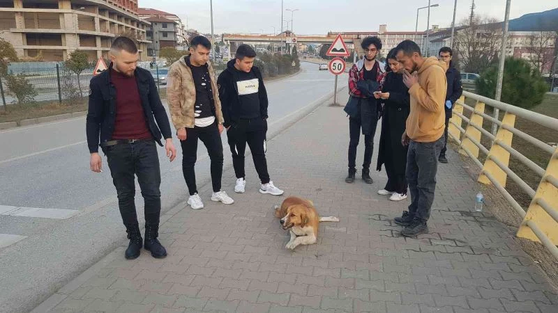 Karabük’te otomobilin çarptığı köpek, gençlerin çabasıyla yaşama tutundu.