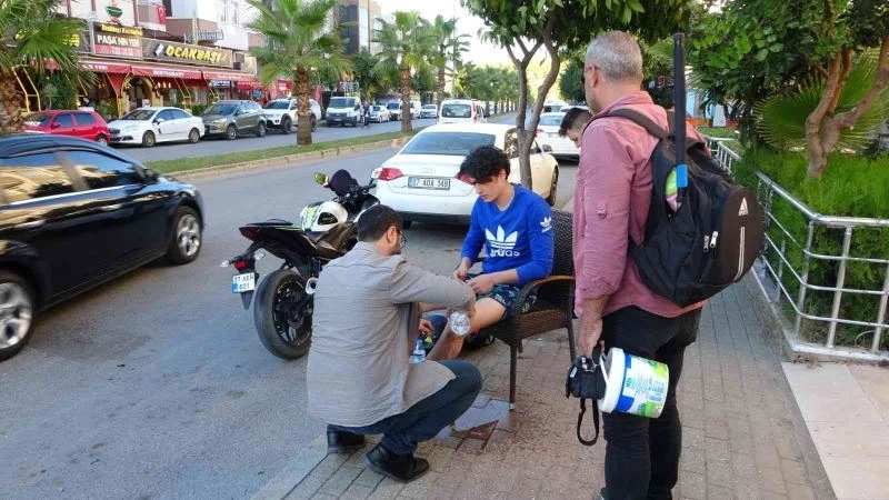 Antalya’nın Manavgat ilçesinde otomobil ile motosikletin çarpışması sonucu meydana gelen kazada motosiklet sürücüsü yaralandı. Çarpmanın şiddetiyle yola savrulan motosiklet sürücüsü kask sayesinde kazayı ayağındaki küçük sıyrıklarla atlattı.