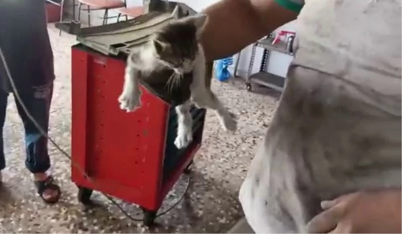 Bu anlar saniye saniye görüntülenirken, kurtarılan kedi daha sonra annesinin yanına bırakıldı.