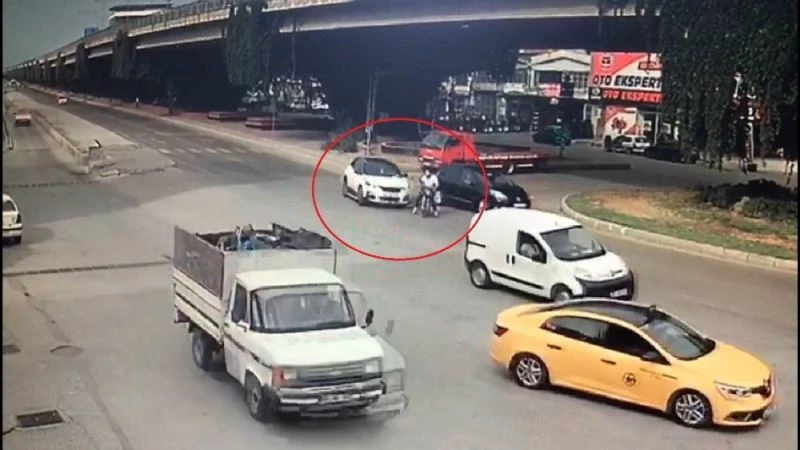 Samsun’da bir kişinin yaralandığı otomobilin motosiklete çarpma anı güvenlik kamerasınca anbean görüntülendi.