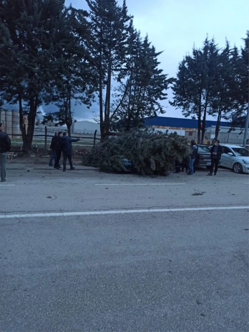 Şiddetli lodos Bursa’nın İnegöl ilçesinde de etkili oldu. Ağaçtan kopan dal park halindeki otomobilin üzerine düşerek zarar verdi.