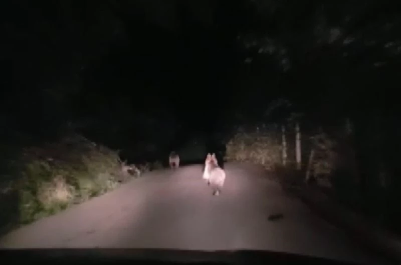 Cep telefonu ile video kaydı alırken koşan yavru ayıları araçla takip eden şahıslar, ayıların köye girmesi sonucu büyük korku ve panik yaşadı. Yavru ayılar, köy içindeki bir evin bahçesine girerek gözden kayboldu.