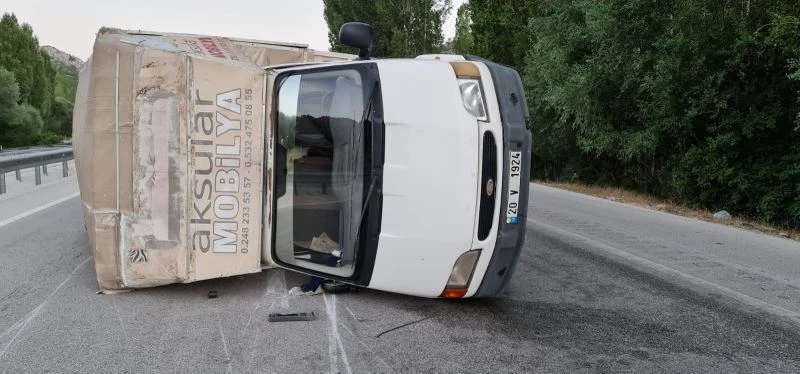 Otomobille çarpışan mobilya yüklü kamyonet yan yatıp sürüklendi: 4 yaralı