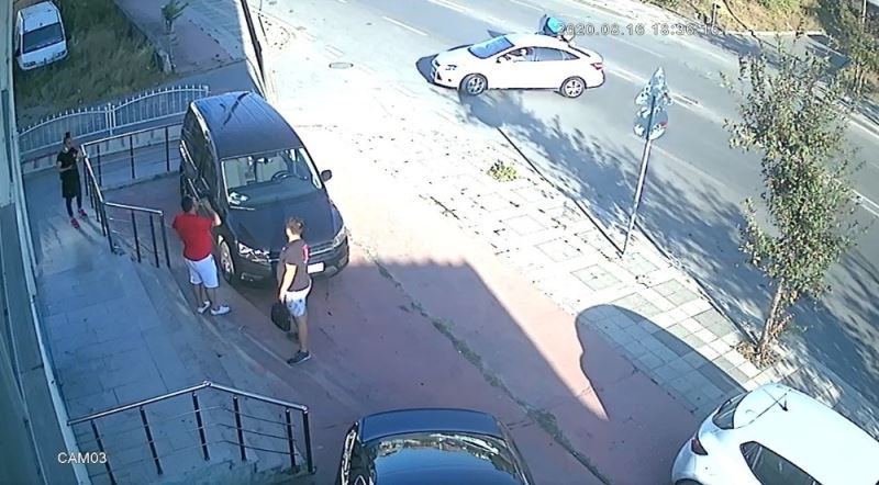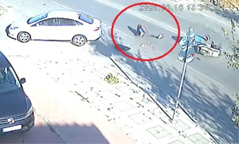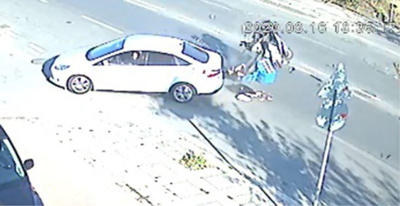 Kaza anı çevrede bulunan bir güvenlik kamerası tarafından da saniye saniye kaydedildi. Görüntülerde, motosikletin caddede seyir halindeyken, karşı yönden gelerek sokağa girmeye çalışan otomobile çarptığı, bu esnada sürücünün acı içinde yere yığıldığı görülüyor. Kazaya karışan otomobilin sürücüsü ise hemen aracından inerek motosiklet sürücüsünün yardımına koşuyor.