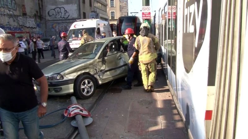 Beyoğlu Karaköy tramvay durağında, otomobille tramvay çarpıştı. Araç sürücüsü yaralanırken, tramvay seferleri çift taraflı durduruldu.