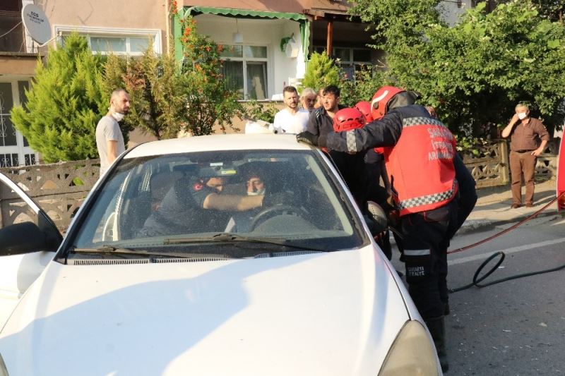 Sakarya’nın Erenler ilçesinde 2 otomobilin çarpışması sonucu meydana gelen trafik kazasında araç içerisinde sıkışan yaralı sürücü itfaiye ekiplerince kurtarılarak hastaneye kaldırıldı.