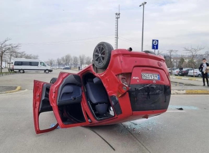Kocaeli’de sahil kenarındaki otoparkta iki otomobilin çarpışması neticesinde kaza meydana geldi. Otomobillerden birinin takla atarak durabildiği kazada yaralanan kimse olmadı.