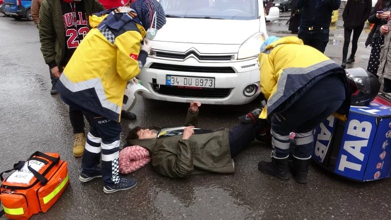 Kaza, ilçeye bağlı Müftü Mahallesi Erdemir Caddesinde meydana geldi. Alışveriş merkezi otoparkından çıkan Hasib E. (74) idaresindeki 34 DU 8973 plakalı Citroen marka kapalı kasa kamyonet, caddeye dönüş yaptığı sırada Mertcan Ç. (20) idaresindeki 34 TD 1634 plakalı motosikletli kuryeye çarptı. Çarpışmanın şiddeti ile devrilen motosiklet sürücüsü Mertcan Ç. yaralandı. Çevredeki vatandaşların ihbarı üzerine olay yerine gelen 112 sağlık ekipleri yaralıya yaptıkları ilk müdahalenin ardından ambulans ile ilçedeki özel hastaneye kaldırıldı. Otomobil sürücüsü ise ifadesi alınmak üzere İlçe Emniyet Müdürlüğüne götürülürken kaza ile ilgili soruşturma başlatıldı.