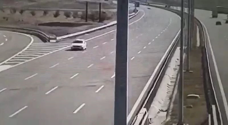 Kaza anına da saniye saniye kameraya yansıdı. Görüntülerde, otomobilin yolda bir anda durduğu ve geri geri manevra yaptığı görülüyor. Daha sonra geri geri gitmeye başlayan araç tıra çarpıyor. Tıra çarpan araç bariyerlere çarparak durabiliyor.