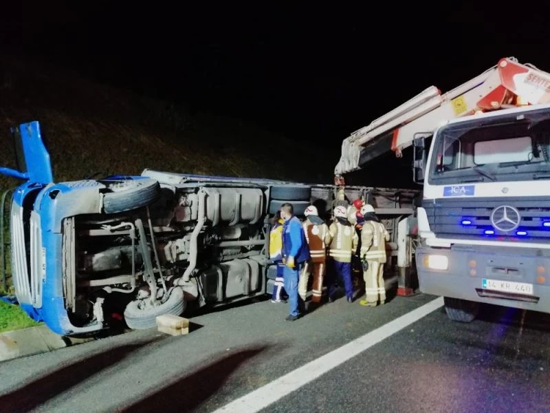 Kuzey Marmara Otoyolu’nda gece saatlerinde meydana gelen kazada TIR sürücüsü devrilen dorsenin altında kalarak feci şekilde can verdi. Henüz bilinmeyen bir nedenden dolayı direksiyon hakimiyetini kaybeden hurda yüklü TIR otoyolun kenarında bulunan su kanalına düşerek yan yattı. Kaza esnasında TIR’ın çekici kabininden fırlayan sürücü devrilen dorsenin altında kalarak can verdi.