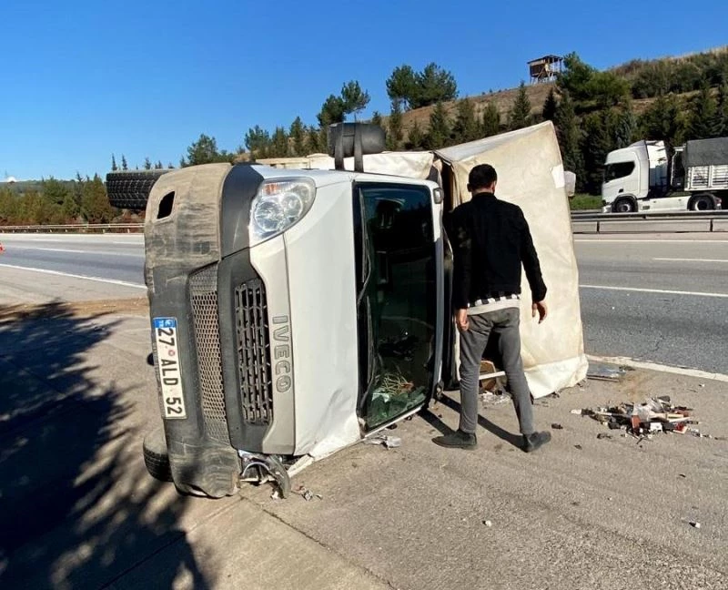 Osmaniye’de TAG Otoyolunda seyir halindeyken sürücüsünün direksiyon hakimiyetini kaybetmesi sonucu mobilya yüklü kamyonet devrildi. Kazada 2 kişi yaralandı.