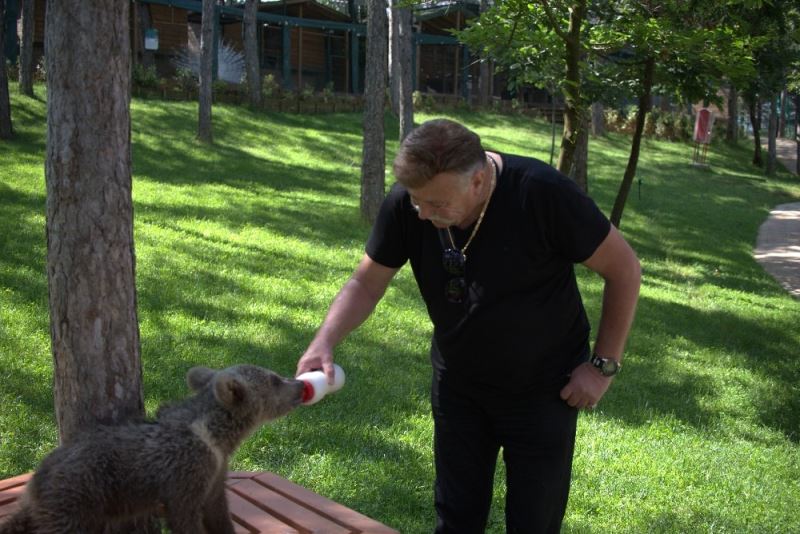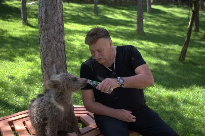 Oyuncu Nuri Alço sevimli yavru ayıya ‘gazoz’ içirdi