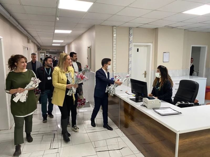 Öz Sağlık İş Sendikası Diyarbakır Şube Başkanı Mehmet Aküzüm, Selahaddin Eyyubi Devlet Hastanesi’ne ziyarette bulunarak kadın personellerin 8 Mart Kadınlar Günü’nü kutladı.