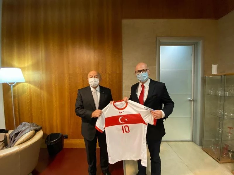 Türkiye Futbol Federasyonu Başkanı Nihat Özdemir, T.C. Madrid Büyükelçisi Cihad Erginay ve T.C. Barselona Başkonsolosu Selen Evcit’e A Milli Futbol Takımı’na olan desteklerinden dolayı teşekkür etti.