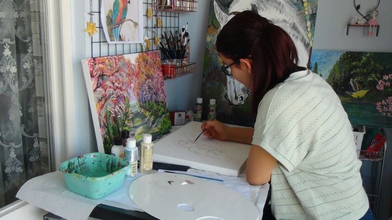 Antalya’da 20 yıl önce bıraktığı mesleğine evde kaldığı pandemi döneminde geri dönüp tekrar eline boya kalemlerini alan ev hanımı Gülsüm Durmaz, yaptığı tablolar ile aile içinde ekonomiye katkı sağladı.