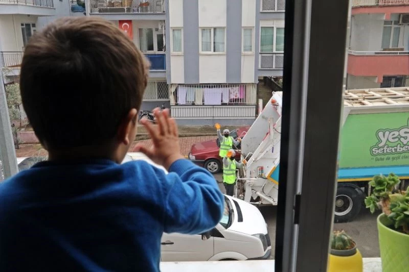 (ÖZEL) 2,5 yaşındaki Yusuf ile çöp kamyonu personelinden yürekleri ısıtan ‘selamlaşma’ dersi