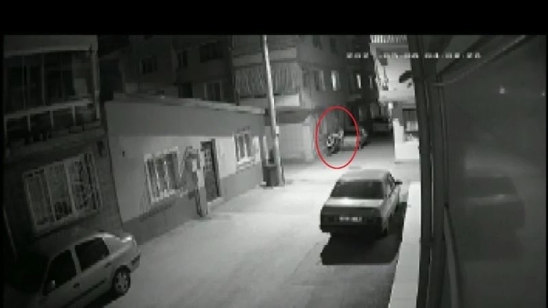 Sokak arasında meydana gelen hırsızlık olayı bir iş yerinin güvenlik kamerasına yansıdı. Görüntülerde, sokağın diğer tarafında nöbet tutan dört kişi görülürken, sokağın başında ise önce kilitli mi diye kontrol edip giden ve daha sonra geri dönüp motosikleti sürükleyerek götüren bir kişinin olduğu görüldü.
