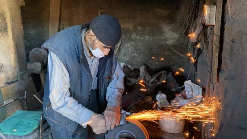 Askerliğini bitirdikten sonra amcasının yanında demirciliğe başlayan Mehmet Yılmaz kazma, balta, kürek gibi aletler imal ederek pandemi döneminde de çiftçilerin tarım âleti ihtiyacını karşılıyor. Kendi dükkânını açan Mehmet Yılmaz’ın 1978 yılında çıkan yangınla kullanılmaz hale gelen ekmek teknesi, mahalle sakinlerince sil baştan yenilendi. O gün köylülere ölene dek hizmet etme sözü veren Yılmaz, o gün bugündür meslek hayatına devam ediyor.