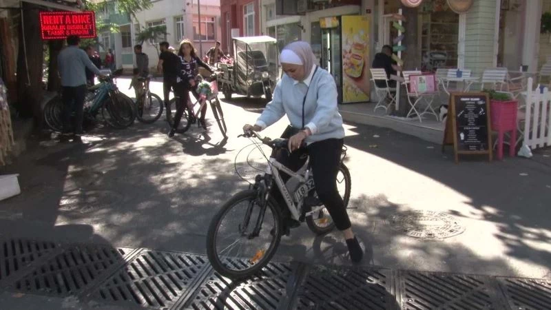Adalar’da motorsuz-elektrikli taşıt olan akülü araçlara getirilen yasak sonrası, Adalar’da ulaşım sağlamak isteyen yerli ve yabancı turistler, bisikletlere yoğun ilgi gösterdi. Yasak sonrası bisiklet, ulaşımı kolaylaştıran unsurlardan olurken, bisiklet kiralama işi ile uğraşan esnaf Adada bisikletlere ilginin arttığını söyledi.