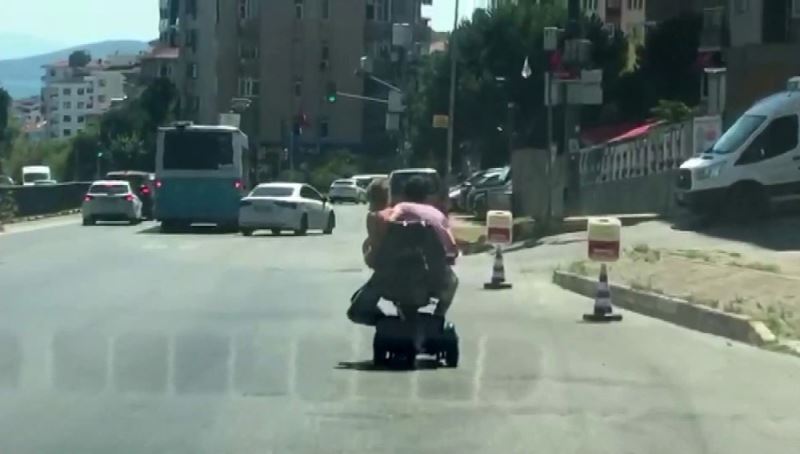 Olay, Kadıköy’de bulunan Bostancı köprüsünde öğle saatlerinde meydana geldi. Bedensel engelli bir kişi akülü aracıyla yola çıktı. Akülü araçta dizine bir kadını oturtan engelli şahıs trafikte yürekleri ağza getirdi. Karşılıklı iki şeritte trafiğin aktığı yolda akülü araçla kontrolsüz bir şekilde ilerleyen şahıs korku dolu anlar yaşanmasına neden oldu. Araçlar trafikte durup engelli vatandaşa yardım etmek istese de çoğu kişi aldırış etmeden yoluna devam etti. Trafik ışıklarını geçen engelli vatandaş bir ara sokağa girerek gözden kayboldu. Trafiği tehlikeye sokan o anlar ise saniye saniye kameralara yansıdı.
