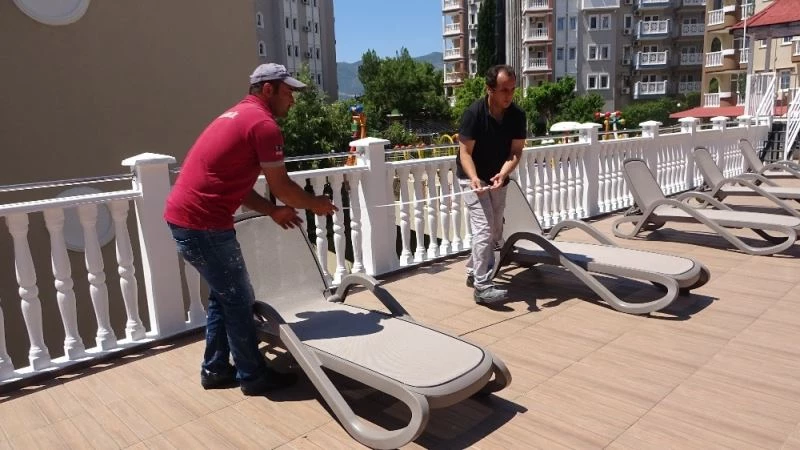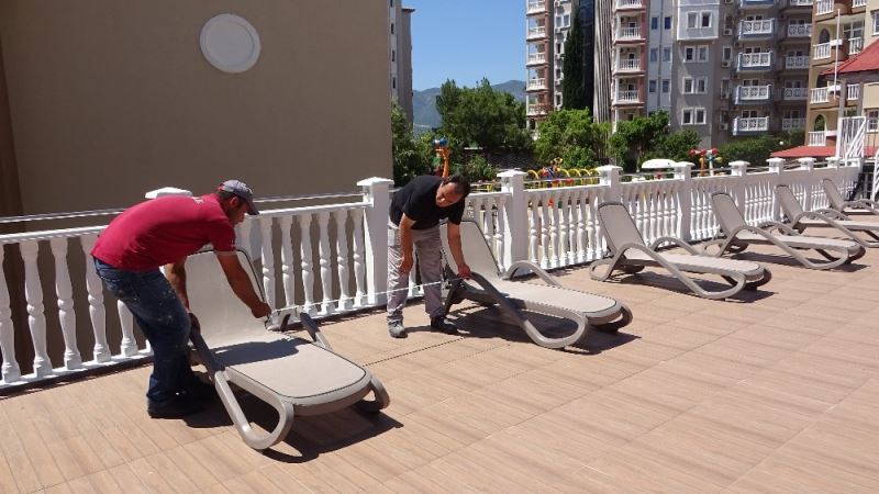 Tüm dünyada etkili olan korona virüs ile mücadele kapsamında Türkiye’de alınan önlemlerle vaka sayılarında düşüş gözlendi. Normalleşme takvimini açıklaması ve Kültür ve Turizm Bakanı Mehmet Nuri Ersoy’un Haziran ayında turizm sezonunu açmayı planlamasıyla Antalya’daki turizmciler 2020 sezonuna merhaba diyebilmek için çalışmalarını hızlandırdı. Antalya’nın ünlü turizm destinasyonlarından olan Alanya’daki otellerde sezon hazırlıklarında havuzdan restorana, odalardan eğlence mekanlarına kadar bütün alanlar tek tek elden geçiriliyor. Tadilatlarda özellikle dikkat edilen konuların başında hijyen gelirken, havuz başlarındaki şezlonglar ve restoranlardaki masalar gibi ortak kullanım alanları sosyal mesafeye uygun hale getiriliyor. Sosyal mesafe kurallarına uyacak şekilde masa sandalye aralıkları, şezlong aralıkları tek tek metreyle ölçülerek kurallara uygun olarak dizayn ediliyor.