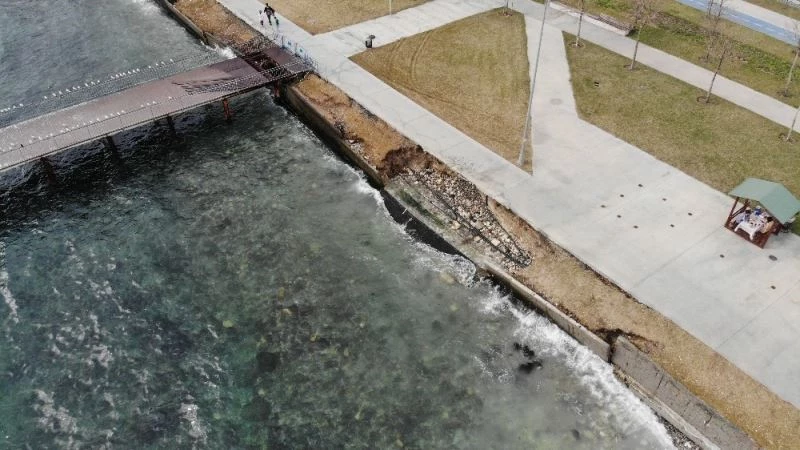 Kent genelinde dün akşam çıkan fırtına nedeniyle birçok ilçede çatılar uçtu ağaçlar ve tabelalar devrildi. Avcılar Sahil Parkı’nda ise etkili olan fırtına nedeniyle dev dalgalar kötü durumda olan istinat duvarının bir kısmını daha çökertti. Üstünden insanların geçtiği çocukların oyun oynadığı bölge drone ile havadan da görüntülendi. Sahilde yürüyüşe çıkan vatandaş, “Ben bile korkarak bu tarafa geçtim ne olur ne olmaz diye. Kötü bence bir an önce yapılmasında fayda var. Fırtına da etkili olmuş olabilir ama uzun süredir böyleymiş gibi de gözüküyor” dedi.