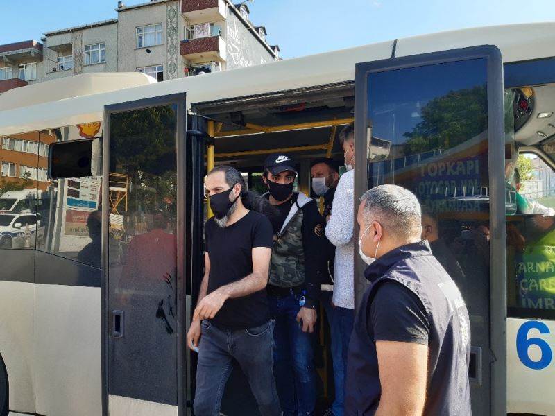 Topkapı-Arnavutköy hattında sefer yapan bir minibüs şoförüne fazla yolcu taşımaktan ceza kesilirken, şoföre ve ayakta olan yolculara sosyal mesafe kurallarına uymadıkları nedeniyle biner lira idari para cezası uygulandı. Minibüsten inen yolcular toplu şekilde durmaması konusunda polis ekiplerince uyarıldı. Toplu taşıma araçlarının yanı sıra sivil araçlar da durduruldu. Maskesiz şekilde yan yana oturan yolcular ile asayiş ve trafik yönünden kuralları çiğneyen kişiler de cezadan kaçamadı. Kurallara uyan sürücü ve yolculara teşekkür eden polis ekipleri alınması gereken tedbirlerle ilgili bilgilendirmede bulundu.