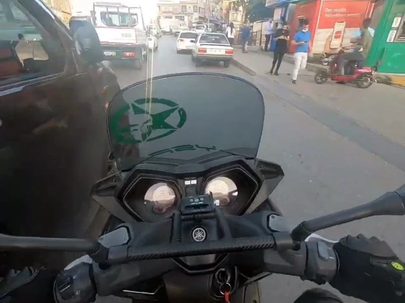Kaza, önceki hafta Cuma günü Bağcılar Halkalı Caddesi üzerinde meydana geldi. Edinilen bilgiye göre, akşam saatlerinde cadde üzerinde motosikletliyle seyir halinde olan Yusuf D., yoğun trafikte araçların arasından geçmeye başladı. Motosikletli bir süre ilerledikten sonra sağ şeritte seyreden kapalı kasa minibüsün sürücüsü, motosikletliye yandan çarptı. Çarpma sonucu motosikletiyle beraber yere savrulan Yusuf D., hafif şekilde yaralandı. Yürekleri ağza getiren kaza ise kask kamerasına yansıdı.
