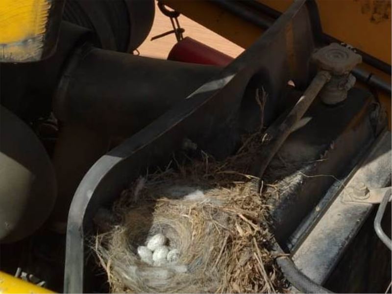 İş makinesin yaklaşık 1 hafta önce arıza yaptığını ifade eden Aytekin Görünüş, “Tamir için usta çağırdım. Ustalar iş makinesini tamir ettikleri sıra bir kuşun kendilerine saldırdığını, sürekli etraflarında dolaştığını bana söylediler. Bende gelip kuşu gördüm. İş makinemize yuva yapacağına hiç ihtimal vermedik. İş makinesi yapıp yaklaşık 200 metre ileride bir iş vardı ortaya götürdük. Operatörümüz, ‘kuş sürekli beni takip ediyor’ dedi. Operatöre dedim o zaman sen iş makinesini sahadan çıkarma. Arıza yaptığı yere getirdik motor kaputunu açtığımızda kuşun yuvasını gördük. Çok güzel bir yuva yaptı 6 tane yumurtası var. İş makinemize ihtiyaç olmasına rağmen operatöre dedim kesinlikle kuşlar büyüyene kadar çalıştırılmayacak. Bizde şuan kuşların yumurtadan çıkıp uçmalarını bekliyoruz. Onlar uçtuktan sonra iş makinemizi çalıştıracağız" dedi.